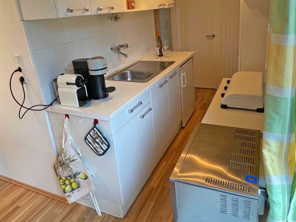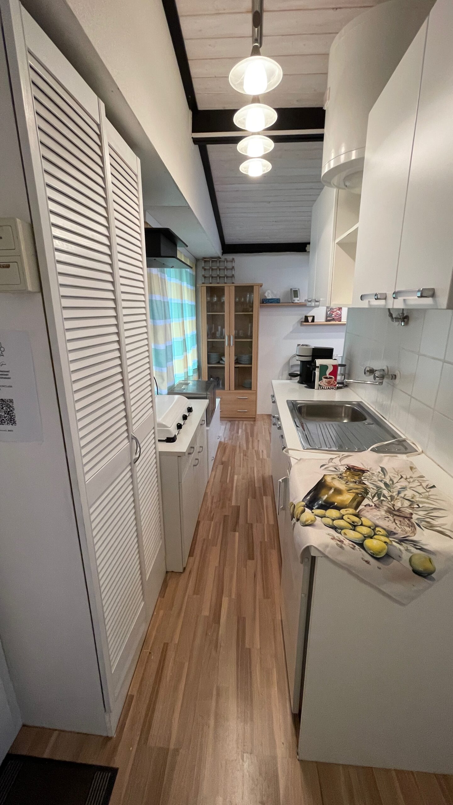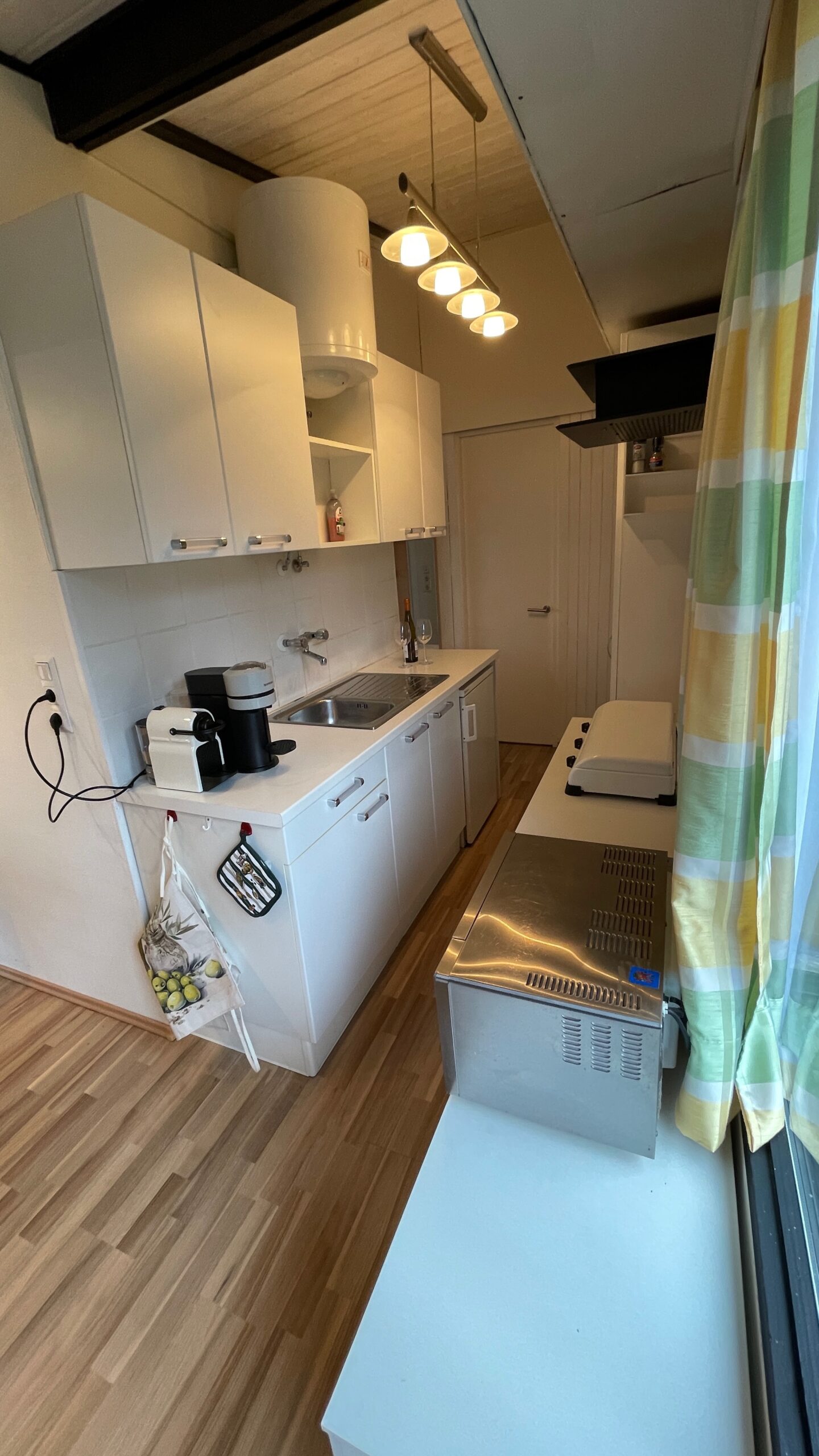 Volledig ingerichte keuken met een 3 pits gasstel, afzuigkap, waterkoker, koffiemachines (Nespresso Original & Nespresso Vertuo), combimagnetron, koelkast met vriesvak inclusief alle kookbenodigdheden.
